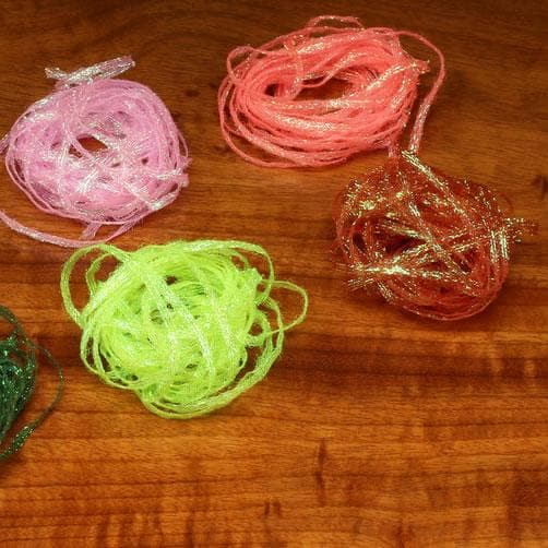This uniqe material lays flat like floss. The braid is loose and easily frayed at the ends for tails and winging material. Tie Gotchas with these and use the same material for the body and tail. Give it a try on small streamers. You will love it
