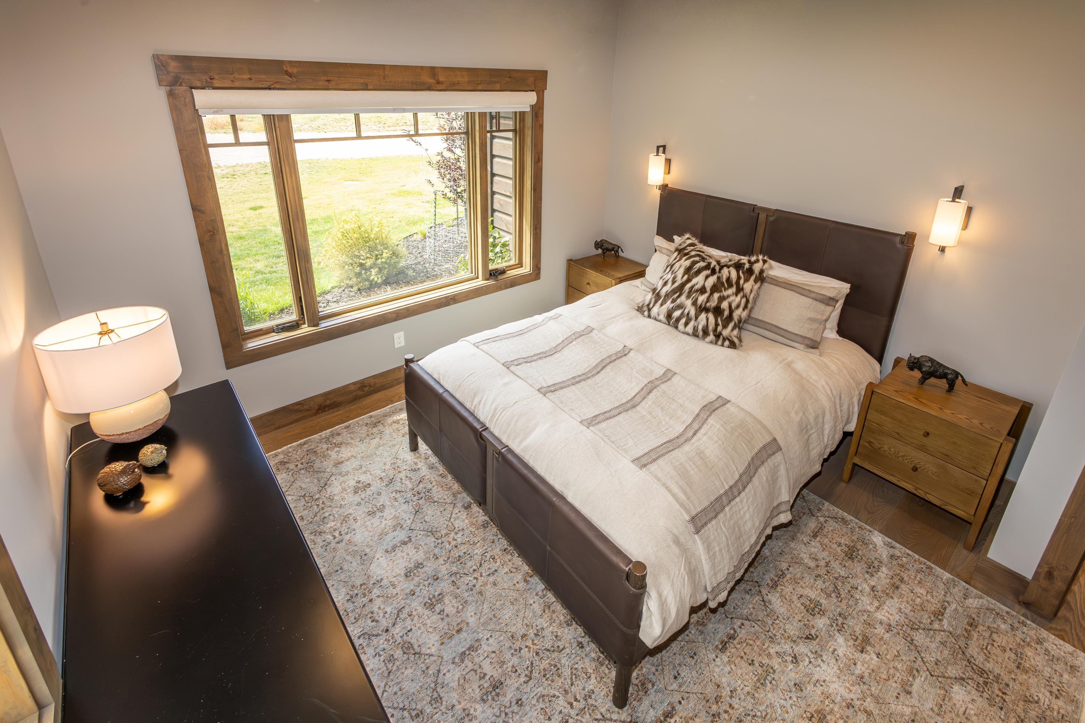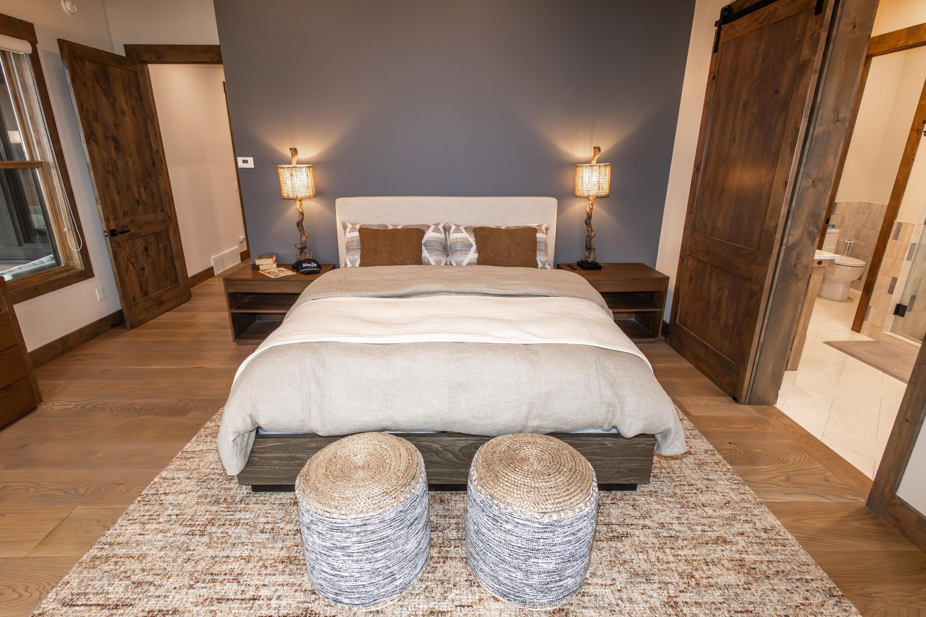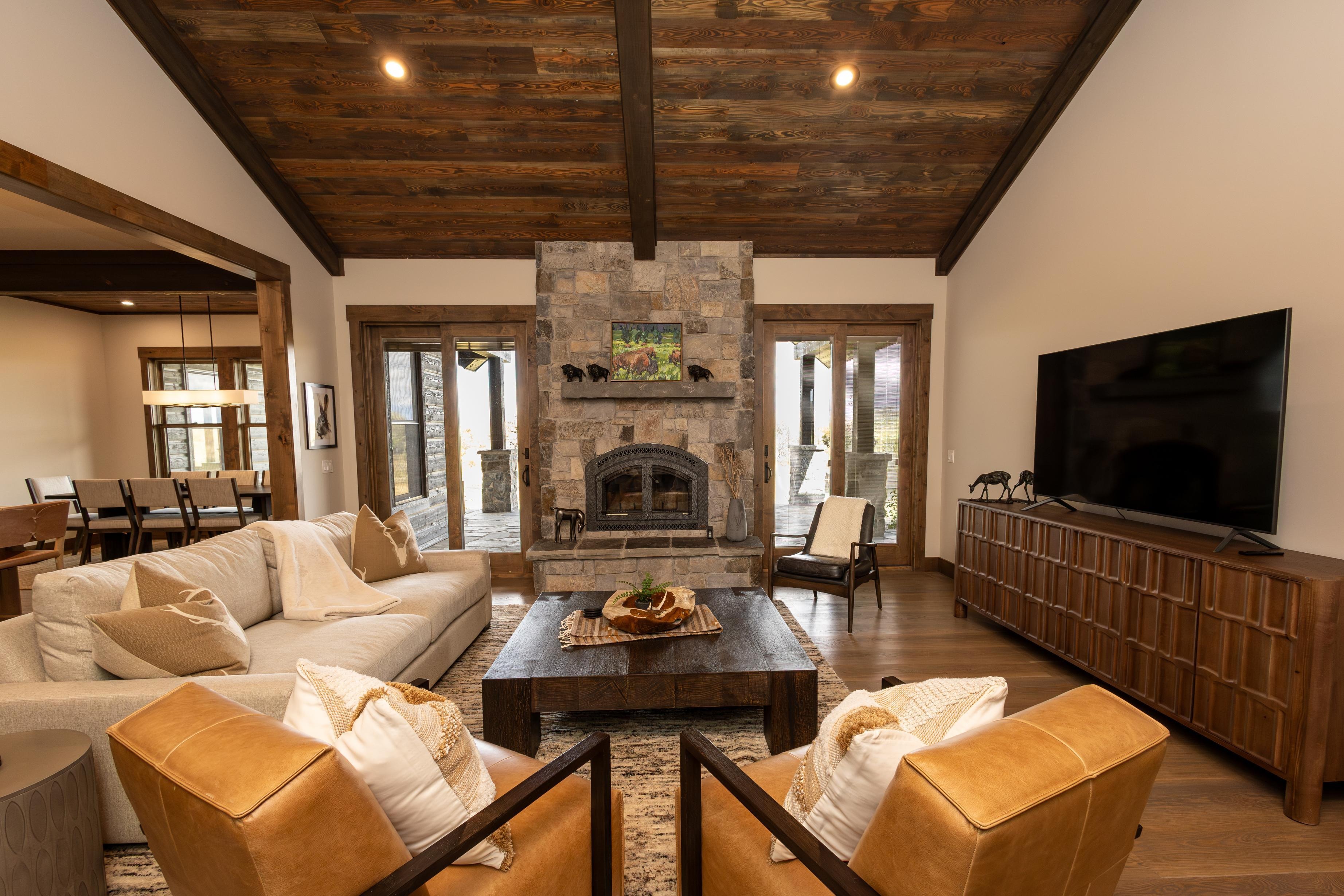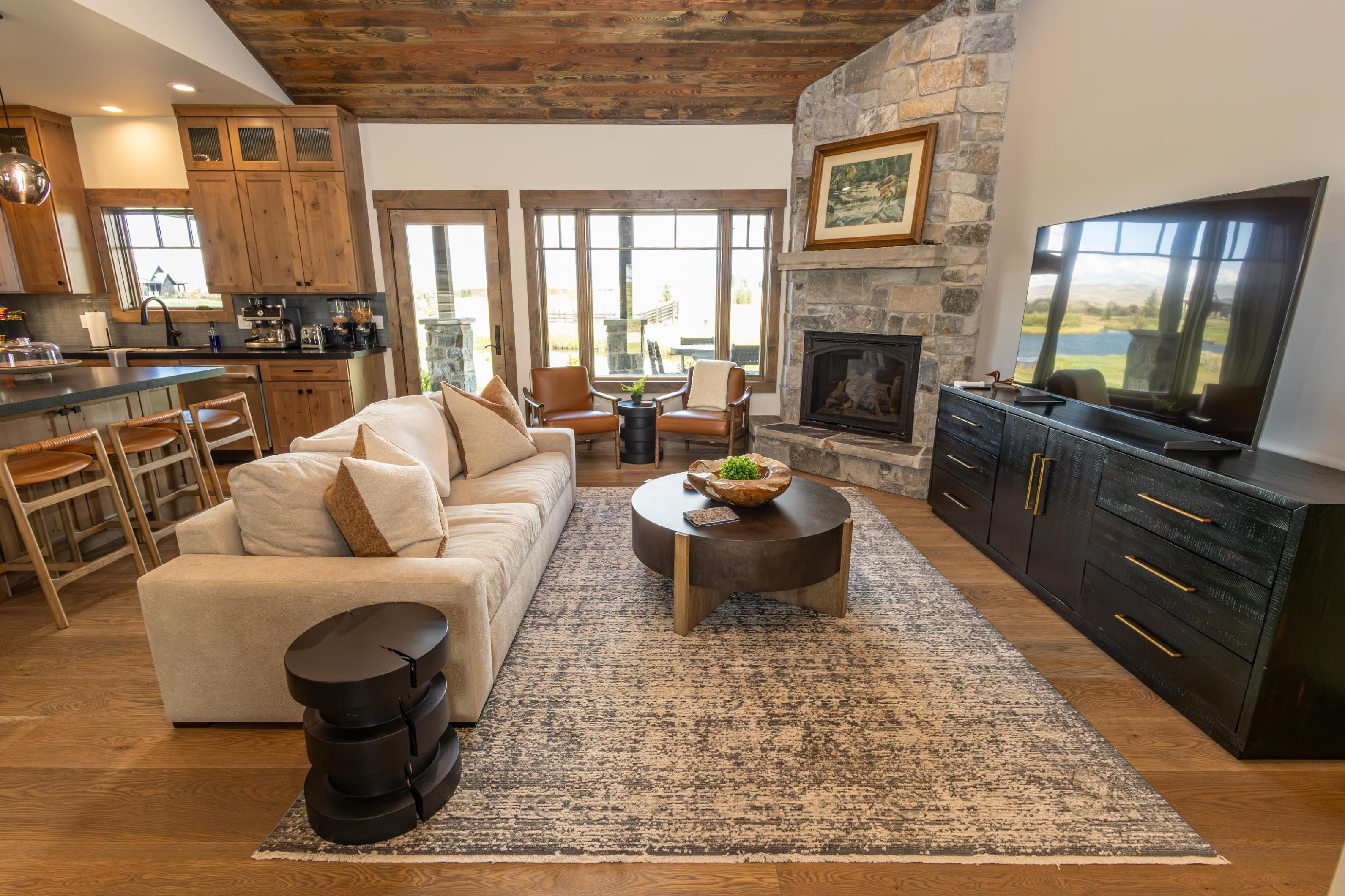 Turnkey modern craftsman home with 4 bedrooms and 3 baths. This is the largest home on the ranch and will make you feel at home away from home, with light and bright rooms offering unparalleled views of the Wyoming wilderness. It’s designed for both entertaining and relaxing, with thoughtful details that blend comfort with modern convenience. Amenities include extra seating in the gourmet kitchen and dining area, a wine fridge, a laundry room, a butler's pantry, an office, high speed Wi-Fi, a smart 4K TV, an indoor fireplace, a large outdoor patio with an outdoor fireplace and gourmet grill, plus spa-quality bathrooms with a soaking tub in the main ensuite bathroom.