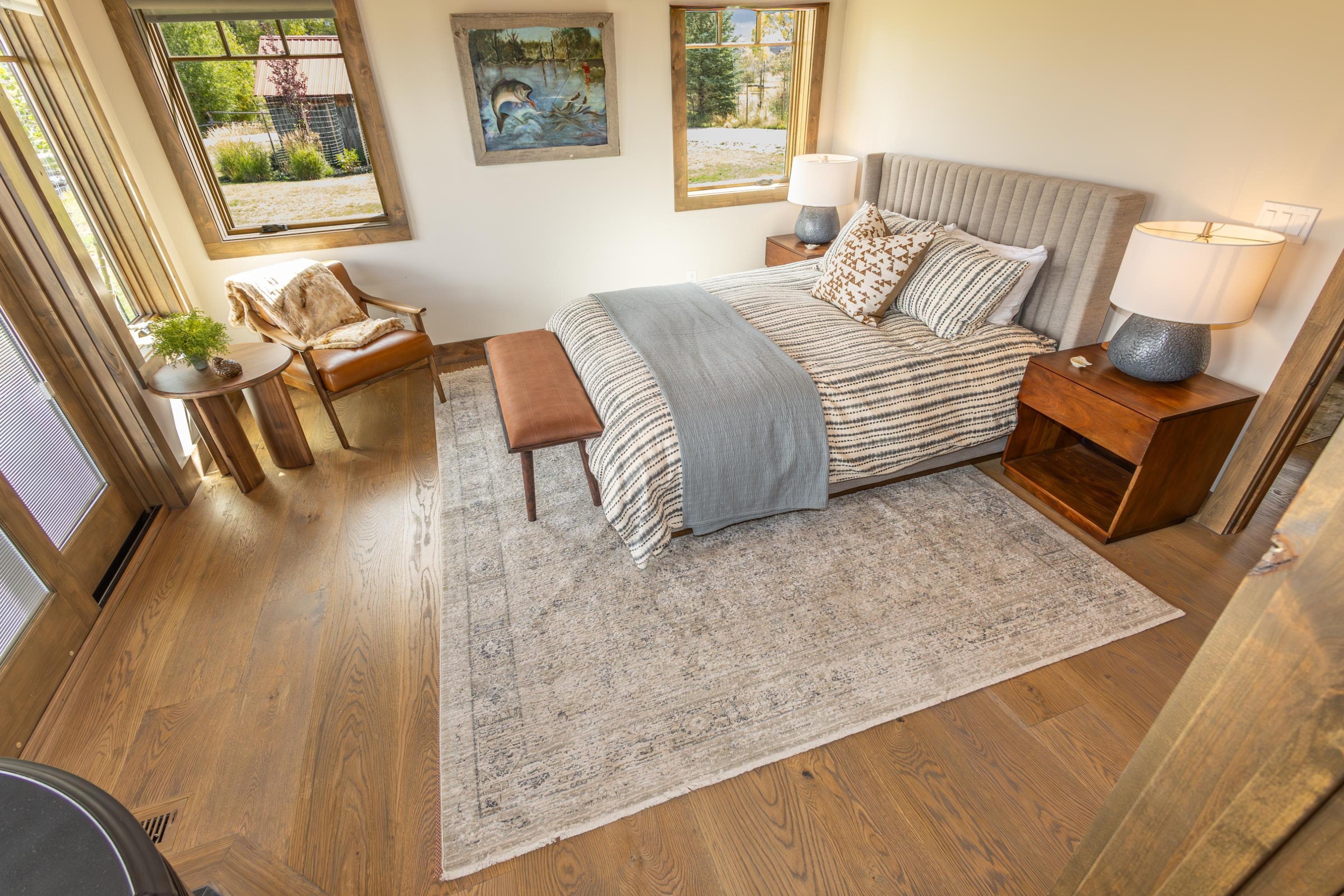 Another 1,800 sq ft modern craftsman home with 3 bedrooms and 2 baths. With plenty of living space and upscale touches, your party of friends or family will feel right at home. Cook meals in the gourmet chef’s kitchen, relax in front of the fireplace after a long day on the river, or head outside to tell stories around the firepit. The large, covered patio provides an additional gathering space. It’s situated near Prairie Creek, the spring creek that winds around Jemas Ranch, with immersive views of the wild landscape from every window.