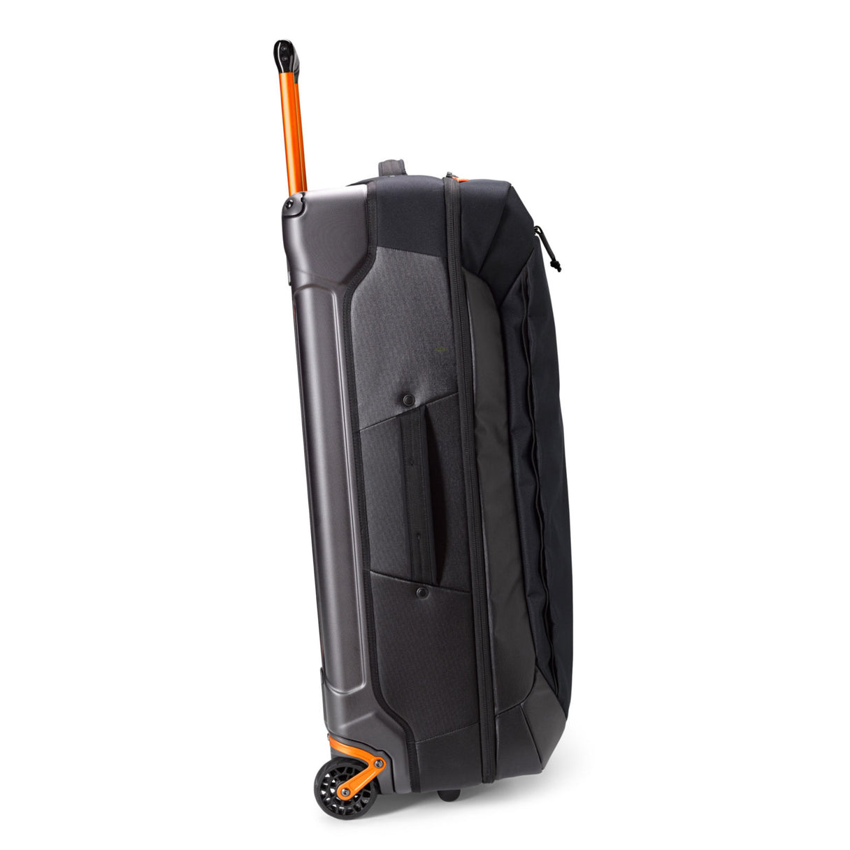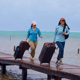 Head off the beaten path with confidence using our travel-tough recycled roller luggage. Designed by our experienced adventure travelers, this large roller bag is made of 100% recycled CORDURA® re/cor™. With a hardshell-back case, it’s lighter weight, water repellent, and sized for longer trips. The ergonomically engineered telescoping trolley handle and low-profile wheels make easy work of navigating airport terminals and city streets. Lockable zippers, interior mesh compartments for organizing contents, and hidden daisy chain for holding attachments. Accommodates 9' 4-piece fly rod tube.