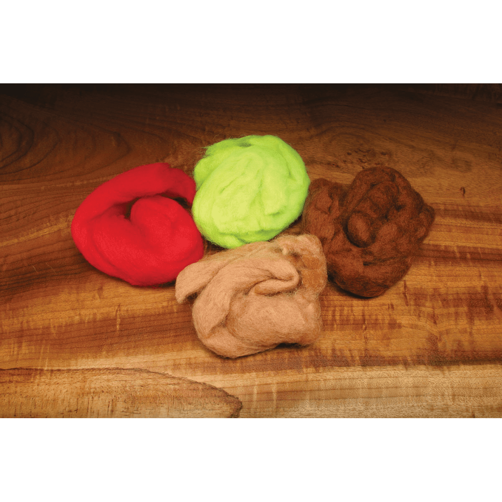 Great for tying wool head sculpin and swimming crab patterns. Natural material absorbs water and aids sinking. Use in place of deer hair for sculpin-type sinking flies. Chop up use for dubbing. In tan, brown, sculpin olive, white, red, chartreuse, silver, black, cream, golden, light olive, olive, dark brown.