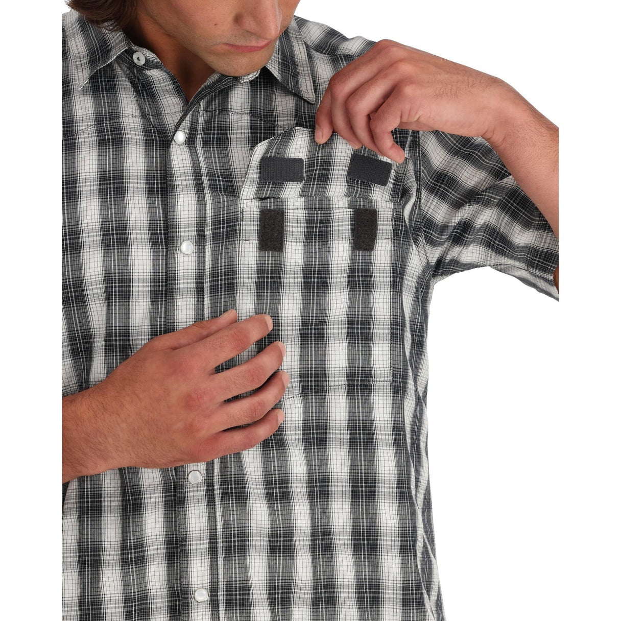 Simms Men's Big Sky Short-Sleeve Shirt - Black Plaid