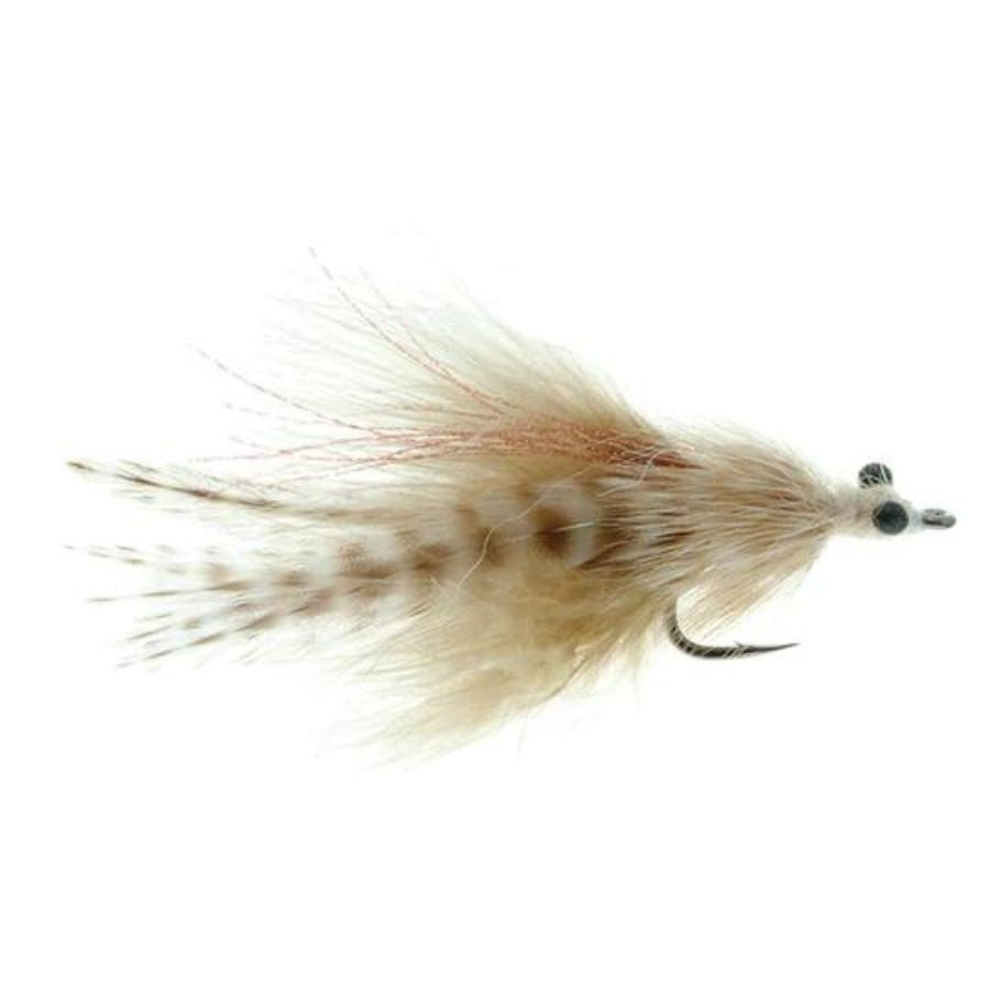 When tarpon float or sleep near the surface, they are said to "lay up" or be "laid up". Rick's fly is especially designed for these, his favorite conditions. At his request we use the Owner AKI preferentially because the 2/0 remains lighter for softer splash down and to ensure the slowest possible sink rate. The fly is also dressed to be bushy and over-hackled, again to land softly and sink very slowly. The combination of light hook and over-dressed fly allows for a very slow strip presentation, one with lots of inherent motion. Rick maintains that traditional and more sparsely dressed tarpon flies must be stripped too fast to prevent sinking below the fish's view to allow for this style of fishing. The Tan color is taken for a Shrimp, the Chartreuse is deadly in off-colored water, and both colors have proven themselves for other species such as Snook and Stripers.