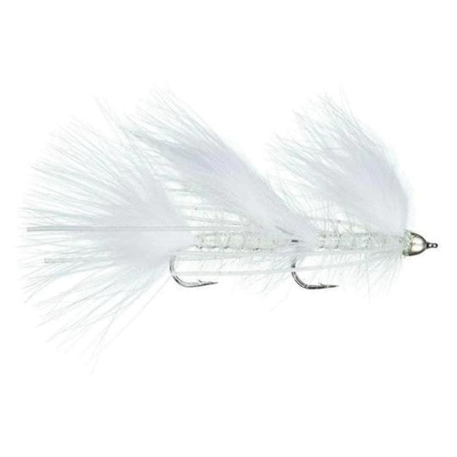 Developed by Kelly Galloup as an evolution of Maddin's original Circus Peanut, the Peanut Envy is a compact, articulated streamer designed to trigger aggressive strikes from big predatory trout. Featuring a double-hook setup with a conehead for weight, it’s tied with marabou, rubber legs, hackle, and ice dubbing to create a lifelike profile with excellent movement and flash. The articulation allows for a swimming, darting action that mimics wounded baitfish, making it especially effective when stripped or jigged through deeper runs, pools, and around structure. Easier to cast than bulkier streamers and deadly on both trout and bass, the Peanut Envy is a staple fly for any serious streamer angler.